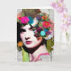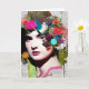 Friendship support card. What's happening? Long distance friendship card. Pretty vintage lady with pink and yellow flowers in her hair with newspaper text background paper collage art effect ai generated. generativecontent