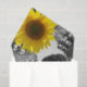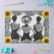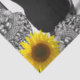 Vintage image of the women in black and white at beach surrounded by shells and sunflowers.