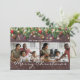 Celebrate the holiday season with these custom rustic christmas cards featuring 2 family photos to be replaced with your own, a dark wooden background, festive christmas tree branches, red & gold tree decorations, string twinkle lights, and your family signature.