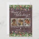 Rustic happy holiday greeting card featuring 3 family photos to be replaced with your own, a dark wooden background, festive christmas tree branches, red & gold tree decorations, string twinkle lights, your name and the year.