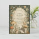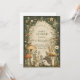 This baby shower design features an enchanting woodland scene with illustrated mushrooms, soft greenery, and adorable forest animals, inspired by vintage storybook and botanical artwork. Earthy greens, warm neutrals, and an antique parchment center create a cozy, timeless forest aesthetic with gentle old-world charm.