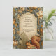 This baby shower design features a charming woodland squirrel surrounded by detailed florals, acorns, and leafy botanicals, inspired by vintage storybook and Arts & Crafts–style illustrations. Warm earth tones, intricate foliage, and an antique parchment center create a cozy, timeless forest aesthetic.