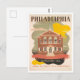 This postcard is a reproduction of a vintage WPA travel poster showing Carpenters' Hall in Philadelphia, Pennsylvania.