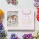 Vintage Wreath Ribbon Bow Pink Baby Photo Gold Foil Birth Announcement Card