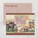 This postcard features a vintage illustration of Wyoming and a map.