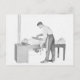This postcard features a vintage photograph of a man taking an X-ray of another man.