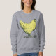 Standing vintage chicken woman's sweatshirt. Muted soft yellow hen drawing in profile, feathers gracefully outlined. Captures the essence of rural country farm life.