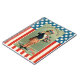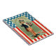 Notebook features a vintage illustration of a young boy dressed up like Uncle Sam proclaiming '4th of July Greetings' while holding a bouquet of flowers. The background showcases the stars and stripes of the American flag in vintage red, white and blue colours.