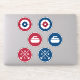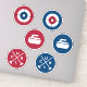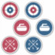 Vinyl stickers featuring curling rocks, brooms and houses in red and blue. Perfect for curlers and curling fans.