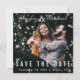 A 90s vinyl record album cover look for your unique save the date. Your colour photo covers this square save the date card. Your names are featured at the top in a distinctive script. At the bottom, Save the Date in spacious text and the wedding date and location. On the reverse side, which is white with a black border, you can add or edit several lines of additional text including your wedding website in text and QR code format. All text can be customised by you. Text colour is white. you can also change this in the Design Tool. Photo Tips: this will look best if your faces are centred the photo.