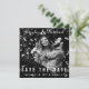 A vinyl record album cover look for your unique save the date. Your photo in black and white covers this square save the date card. Your names are featured at the top in a distinctive script. At the bottom, Save the Date in spacious text and the wedding date and location. On the reverse side, which is white with a black border, you can add or edit several lines of additional text including your wedding website in text and QR code format. All text can be customised by you. Text colour is white. you can also change this in the Design Tool. Photo Tips: this will look best if your faces are centred the photo.
