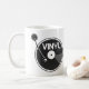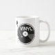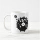 A black and white, vector illustration of a vinyl LP, record on a turntable or record player. A design for people who love the vinyl record format, D'j.s and other music fans.