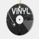 A black and white illustration of a vinyl record on a turntable, record player. The record has vinyl written on it. A fun design for people who like rock & roll music, rock n' roll dancing and the great sound that retro record players can produce.
