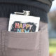 Well made flask, a little better than I had expected. Flask came in clear plastic box which gave it a nice presentation when I took it out of the zazzle packaging. Image is not printed on flask but on sticker. Don't know how this will hold up I haven't used it yet. This would make a Great gift! I plan to purchase more for friends! Cheers. I thought a little brighter than computer. Very crisp, writing wasn't