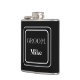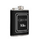 Vinyl wrapped flask is shown in a solid colour of black with a sample groom name.