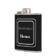Vinyl wrapped flask is shown in a solid colour of black with a sample groomsman name.