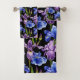 A Colourful Spring Garden Of Blue and Violet Iris's On A Black Background. This Is Beautiful For Any Style Bathroom Decor.