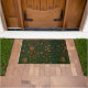 This design features a traditional pattern designed by British artist and designer William Morris (1834–1896). It shows green plants and bright flowers, especially columbines and violets.
