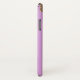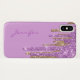 Elegant phone case done in light violet with graphics of a gold and violet faux glitter paint dripping down, from the top of the case. Personalise the text for yourself or as a chic gift idea for her.
