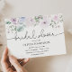 Lovely Bridal Shower invitation featuring watercolor greenery and violet purple florals. Customise with your information for the bride to be.