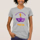 A very elegant mask in violet/purple dust with a sparkling yellow orange feather decorates this subtle elegant Mardi Gras T-Shirt.