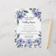 wedding program. Beautiful watercolor painted image of purple anemone flower, shades of blue violet and purple, a lovely still life scene perfect for an elegant modern flower garden wedding in the summer.
