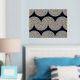 Beautiful contemporary violet, lavender, light purple, blue, and real gold foil coloured geometric abstract wave lines pattern on a black background. Elegant, stylish, and eclectic minimalism design for the artistic hip trendsetter, vintage retro art style, or abstract digital geometric motif lover. Match this design with your interior decor colours and decorate your wall with something exclusive and unique on your wall!