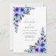 Delicate violet and blue blossoms cascade across this design, evoking a gentle and romantic mood. Lush greenery accents the watercolor florals, perfect for a sophisticated event.