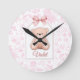 Violet | Custom Pink Teddy Bear Nursery Design Round Clock