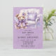 Violet Cute Teddy Bear Chair Girl Baby Shower Invitation
