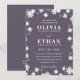 This wedding invitation features delicate violet wildflowers in a minimalist graphic design, blending simplicity with gentle floral charm. The soft purple tones and clean layout create a refined, elegant feel while giving a subtle botanical touch.