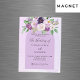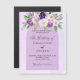 A lavender watercolored background and an arch frame, decorated with violet and purple flowers. Personalise and your names and the details.
