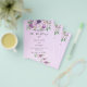 A violet, lavender watercolored background. Decorated with violet and purple watercolored flowers and greenery. Personalise and add your names and party details.