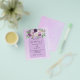 A lavender watercolored background and an arch frame, decorated with violet and purple flowers. Personalise and your names and the details.