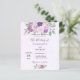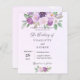A violet, lavender coloured background. Decorated with violet and purple watercolored flowers. Personalise and add your names and party details.