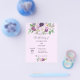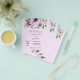 A violet, lavender coloured background. Decorated with violet and purple watercolored flowers. Personalise and add your names and party details.