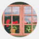 Violet Geraniums In The Window Of A Traditional Ho Classic Round Sticker