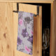 violet hand bells and pink butterflies pattern tea towel