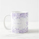 A white background with violet, lavender coloured faux glitter dust. Personalise and add a name. The name is written with a modern, elegant hand lettered style script.