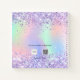 A trendy holographic background with unicorn colours and rainbow colours in pink, purple, mint green. Decorated with violet, lavender coloured confetti. Personalise and add your name, title, text