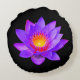 Violet Lotus Flower on Black Round Cushion