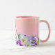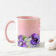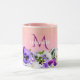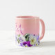 Violet pansies flowers on peach with monogram name mug