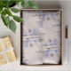 This floral design features pastel violet and peach five petal wild roses and geometric borders with a template text message. Personalise the text in the template field or edit using the design tool to select a font style, size, and colour you prefer. Select from 2 paper styles, and 7 sizes.