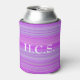 Personalised monogram can cooler has fine lines with a violet pink coloured background. HAmbyWhiteGlove
