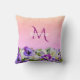 Violet pink florals monogram name cushion