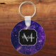 Violet purple abstract galaxy Custom Monogram Key Ring