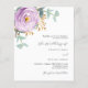 A white background. Decorated with violet, purple florals, roses flowers and green watercolored eucalyptus leaves, sprigs, greenery and a faux gold sprigs. Personalise and add your names be and details.