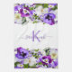 Two elegant borders of violet, lavender coloured, purple and white flowers, pansies on an elegant white background. Personalise and add your name and monogram letter, initial. Purple coloured letters. The name is written with a modern hand lettered style script with swashes. To keep the swashes only delete the sample name, leave the spaces or emoji's in front and after the name.