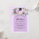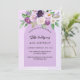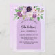 A violet, lavender watercolored background and an arch frame. Decorated with violet and purple watercolored flowers and greenery. Personalise and add your name and party details.