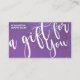 This is the perfect gift certificate business card for a trendy, stylish, girly, and modern businesswoman. This design features a simple white handwritten brush script typography on a faux printed sparkly violet purple glitter and bright violet purple ombre gradient glamourous and chic background. It's the perfect way to allow your customers to buy a gift for their family and friends and at the same time promote your business.